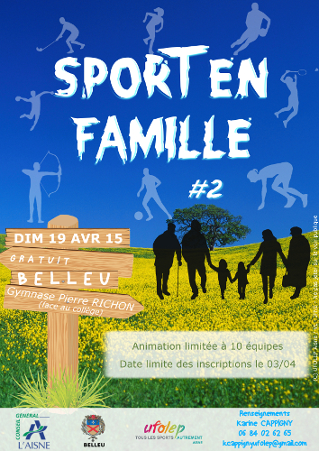Le dimanche 19 Avril 2015 au matin, l'UFOLEP Aisne organisera à BELLEU pour la seconde édition une journée "Sport en Famille".