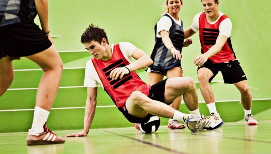 Le Kindball est un jeu collectif mixte venu du Canada. Trois équipes de quatre joueurs se rencontrent en même temps sur un terrain carré. Lorsque son équipe est nommée, les joueurs doivent attraper le ballon (gros ballon de baudruche) avec n’importe quelle partie du corps avant qu’il ne touche le sol. L’équipe qui a attrapé le ballon le relance à une autre équipe et le jeu se poursuit tant qu’il n’y a pas de faute commise.