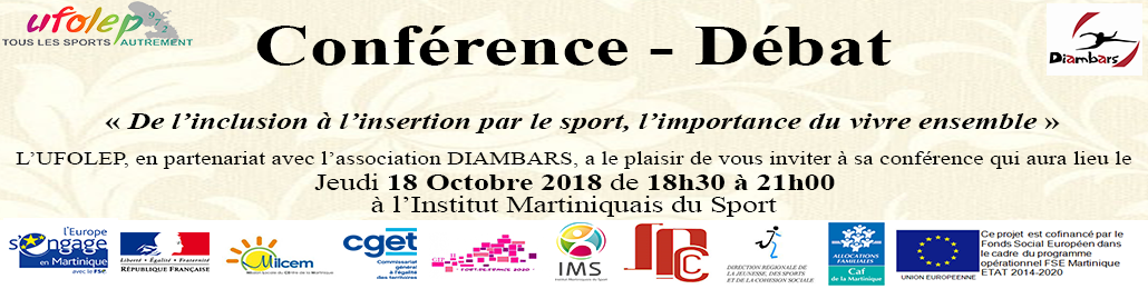 Organisée par l'UFOLEP Martinique, en partenariat avec l'association DIAMBARS, cette rencontre a pour objectif d'approfondir la réflexion, partager des retours d'expérience autour de la place du sport dans les dispositifs de remobilisation et d'insertion en direction des jeunes.