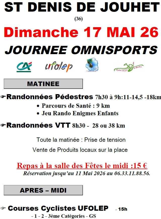 JOURNÉE OMNISPORTS à ST DENIS DE JOUHET - 17 mai 2