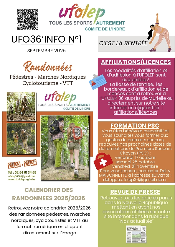 Vous trouverez ci-joint la 1ère lettre d'information de l'UFOLEP 36 du mois de septembre 2025.