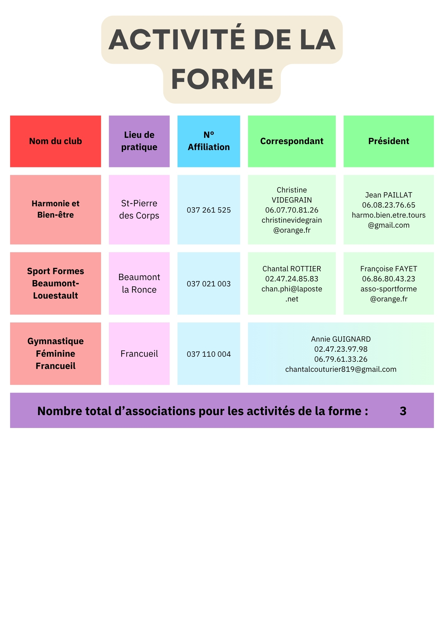 Répertoire des Clubs Activités de la forme UFOLEP