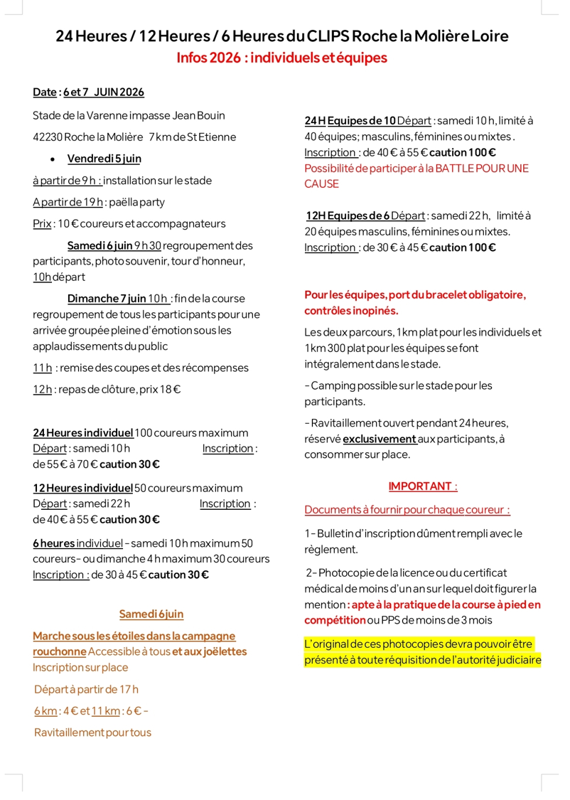 28ème édition du 24 heures de ROCHE LA MOLIERE LE