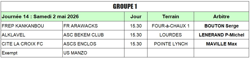 CHAMPIONNAT 2025-2026 - GROUPE 1 |