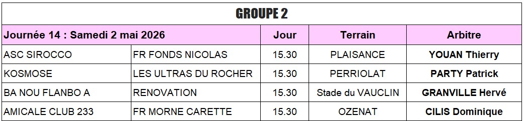 CHAMPIONNAT 2025-2026 - GROUPE 2 |