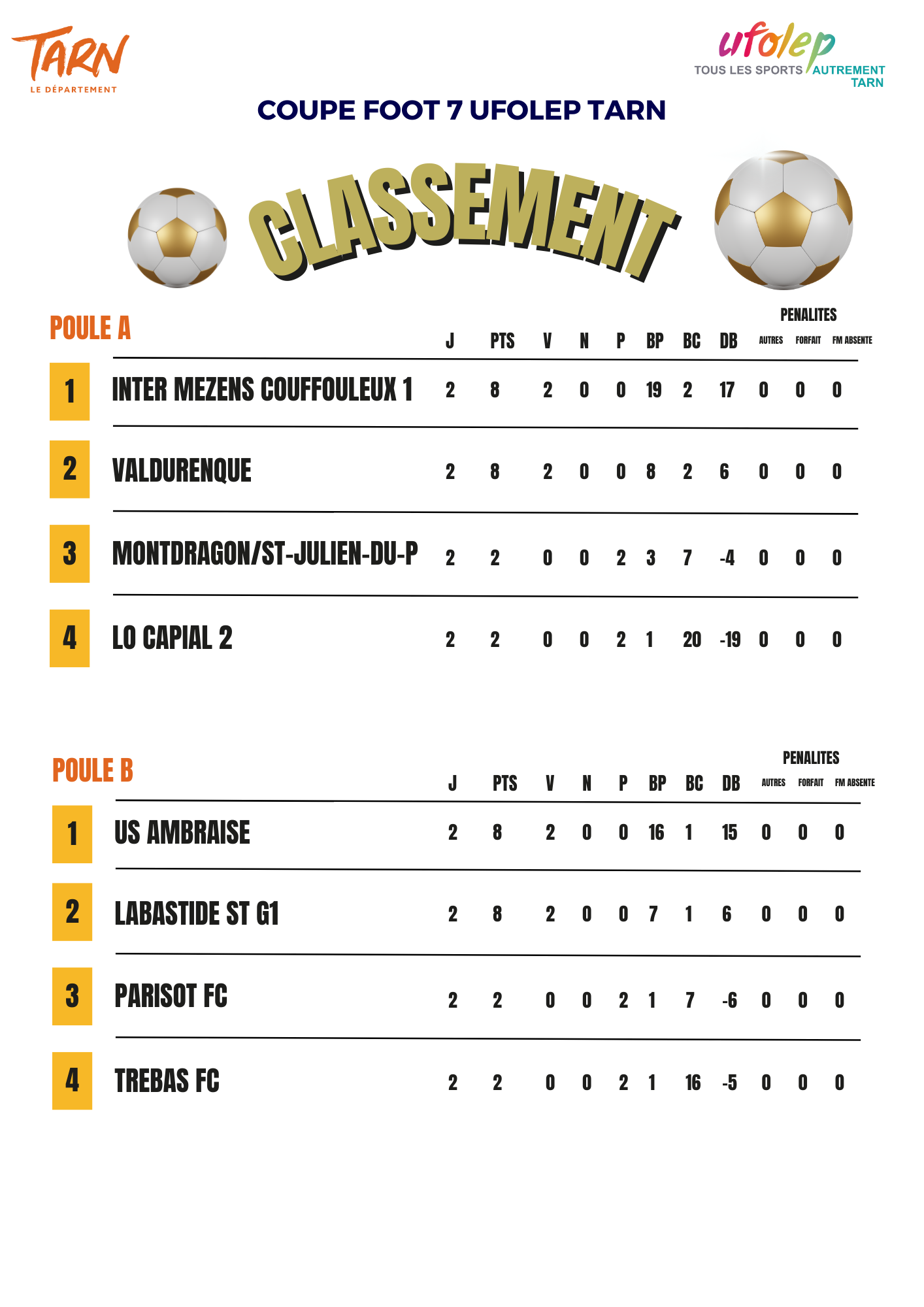 Pour toutes questions, vous pouvez contacter l'UFOLEP au: 05 63 54 03 54 ou au 07 69 03 84 54