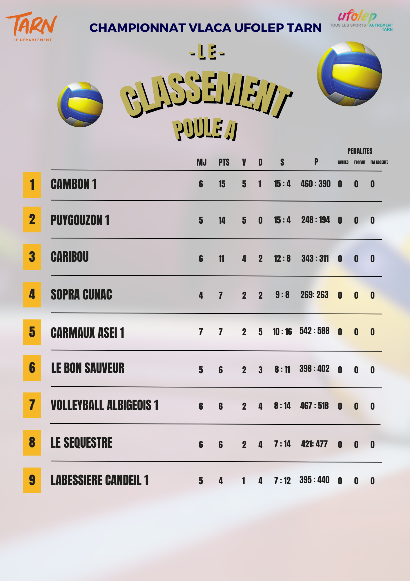 Pour toutes questions, vous pouvez contacter l'UFOLEP au: 05 63 54 03 54 ou au 07 69 03 84 54