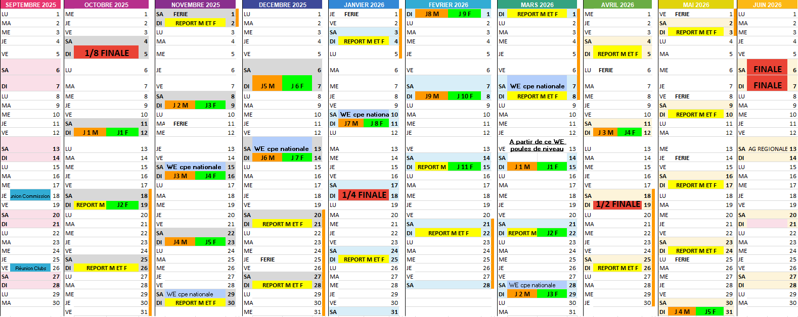 Pour télécharger les calendriers des divisions 2025-2026, cliquez sur les liens ci-dessous.